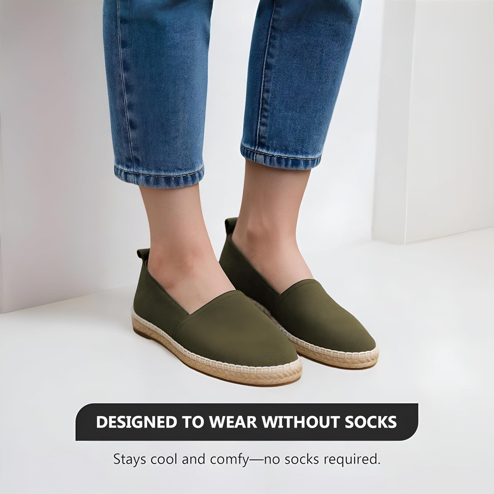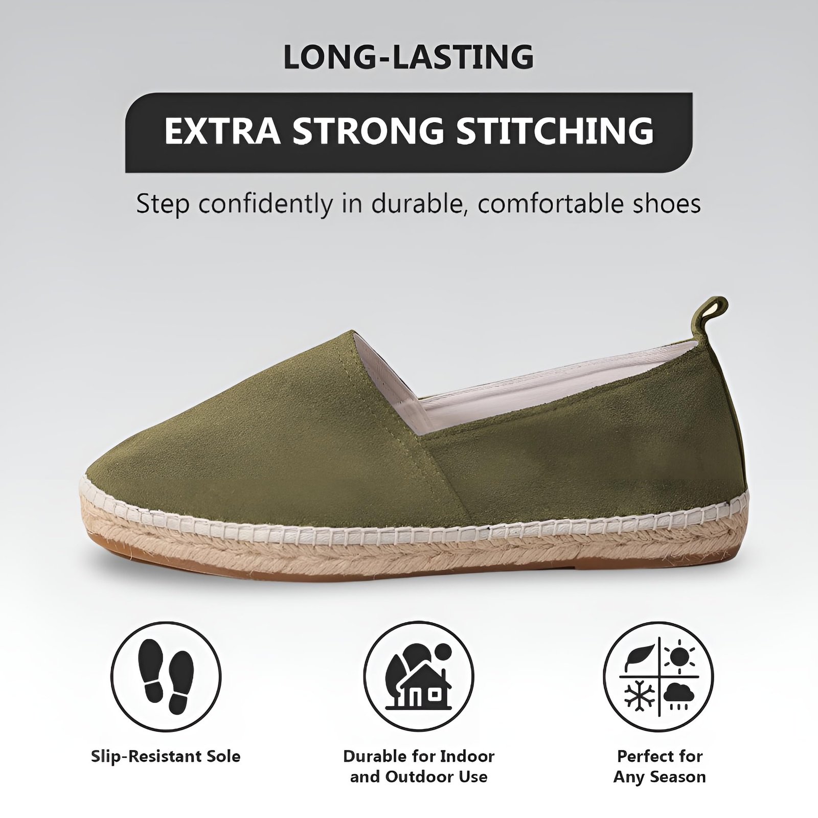 VOLIRIN & KAMMV Closed Toe Comfortable Suede Slip on Flat Espadrilles for Men (Olive, US Footwear Size System, Adult, Men, Numeric Range, Medium, 9, 9.5)